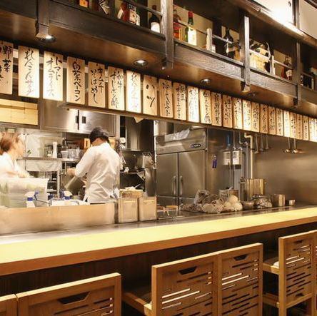人気の大鉄板前のカウンター席は、目の前でお料理を焼き上げますので臨場感を楽しめる特等席!気さくで親しみのある焼き手とのおしゃべりも楽しみながら、韓国風鉄板焼きやお好み焼きをご堪能いただけます。落ち着いた雰囲気になっておりますので、お仕事終わりの1人飲みやデートなどにオススメです!